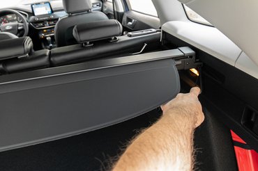 A hátsó lábtér nagyobb is, mint gondoltam, a csomagtartó meg olyan, amivel egy autógyár harcba indul egy Octavia/Ceed/i30 kombi ellen. Igaz, aki egy 5 centi mély rekeszt álmodott a raktér alá, azért megkérdezném, mire gondolt: még a KRESZ-tarozékok sem férnek ide. Itt van viszont az erősítő, ami finoman szólva sem szól úgy, ahogy a B&O logo alapján hittem. Dobozhangú, kommersz hifi, semmi több. Régen bármelyik jobb Sony hifi szebben szólt a Fordokban. Ellenben a Focusé az egyik legkönnyebben kivehető csomagtérroló, az ember meghúzza a leffentyűt, és maga felé kihúzza a roló jobb oldalát, és már kint is van. Nem kell emelgetni, összenyomni a két végét és hasonlók.