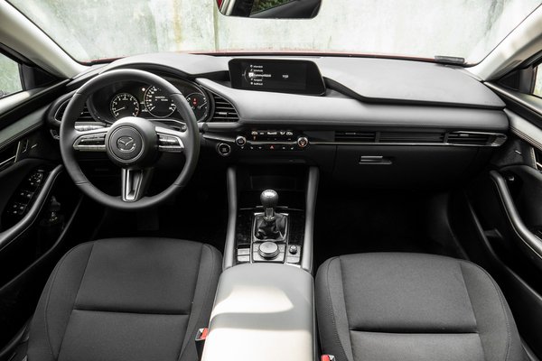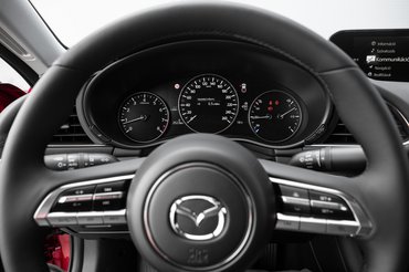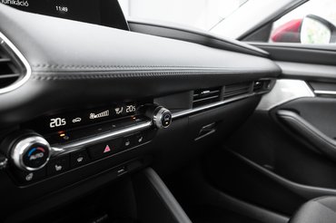 Alapárnak ez azért egy kicsit húzós, főleg, hogy a szintén ütős, bár máshogy látványos Corolla hatmillió alatt indul, egy Megane pedig kicsit több mint ötmillióért fapaddal vihető. A trükk az, hogy a Mazda-féle fapad már meglehetősen kényelmes. Alufelni, LED lámpák, HUD, bőr kormány és váltógomb, egy zsáknyi jól működő vezetéstámogató kütyü, és elektromosan állítható tükrök is járnak hozzá. Így már egész jól hangzik, ezért is érthetetlen húzás, hogy a rengeteg, más gyártónál bőven feláras extra mellé kizárólag manuális klíma jár. Tehát hiába olvassuk a terjengős felszereltségi listát, épp mire meggyőzne, hogy ez bőven elég bárkinek, kiderül, hogy automata klímát csak egy szinttel feljebb kapunk. Plusz félmillió.