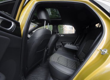 Az európai bemutatón nem értem rá muzsikálni, úgyhogy csak most állapítottam meg: ez a JBL-cucc nem szögezett az ajtókárpithoz - mintha az lenne az új trend, hogy márkás hifi nem feltétlenül jelent jót. A múltkor hallgattam egy lakossági, viszonylag fapados Ceedét, szerintem semmivel nem volt rosszabb. Viszont először fordult elő, hogy az autó érintőképernyőjéről tudom léptetni a telefonon streamelt zenét. Lájkolni az egyes számokat még nem, de gondolom, a félidős frissítésre az is összejön. Szép a kijelző grafikája, blablabla, szokásos hisztim persze most is előadhatom: simán lehetett volna két centivel alacsonyabb a tablet, akkor nem áll ki a felső pereme ilyen rondán a műszerfalból.