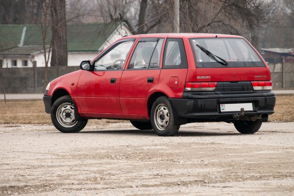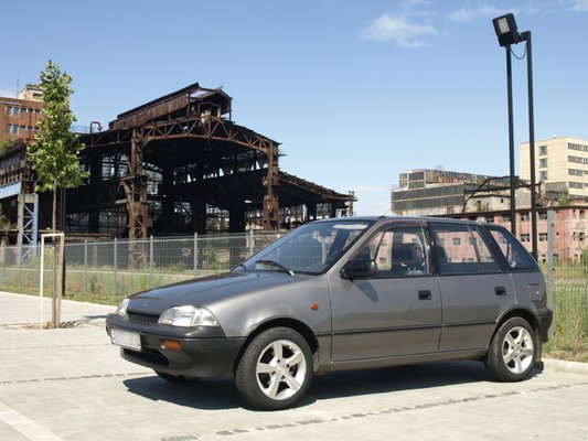 Vezetni amúgy nem rossz a huszonéves Suzukit. A kormány annak ellenére is könnyen tekergethető, hogy szervótlan, a váltó pedig japánosan pontos. Egyedül a hátramenetet veszi nehezebben, néha reccsenősen, de ez egyébként is jellemző a Suzukikra. A 155-ös gumik, alias virslik aránylag kevés kontaktot biztosítanak az aszfalttal, így szerpentinen hamar előcsalogathatjuk a csikorgást. Cserébe hóban például tök jó a keskeny kerék, és nem utolsósorban olcsón felgumizhatjuk. Érzésre a kocsi minden porcikája egyben van.