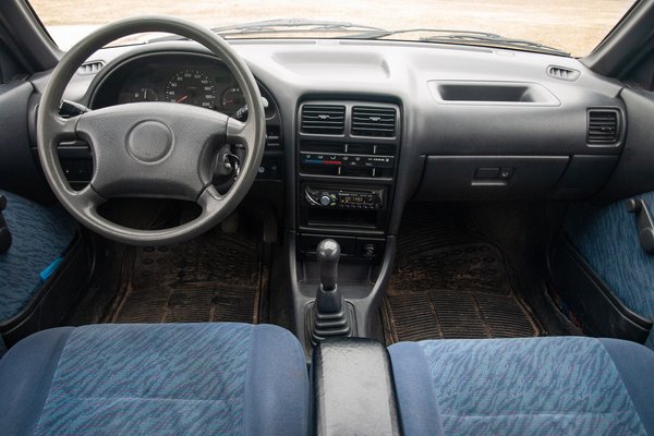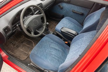 Tesztautónk egy 1997-es, ötajtós, ezres, háromhengeres példány, feltehetőleg kb. 220 ezer kilométerrel. Azért csak feltehetőleg, mert százezrenként átfordul. Míg korábban az irányjelzők a lökhárítóban voltak, a fényszórók mellé pedig helyzetjelzőket szereltek, addig ennél már felköltözött az index. Igaz, annak az évjárat szerint sárgának kellene lennie. Emellett változott a hűtőrács, a hátsó lámpán is módosítottak.