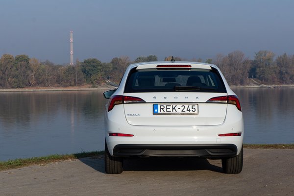 Hátul sokáig gondolkodtam, hogy honnan ismerősek a lámpák, aztán végül rájöttem, hogy az ötajtós Fiat Tipo lámpáját látom szögletes változatban. A középre tett Škoda felirat nekem kicsit sok, maradhatott volna a logó, nem ettől lesz a Scalából Volvo. A csomagtérajtót felárért lehet sötét üvegbetéttel is kérni, akárcsak a Rapid Spacebacknél. Kívülről a Scala összességében egyáltalán nem egy csúnya autó, de a Škoda eddig szinte csak jobbat tudott ennél.