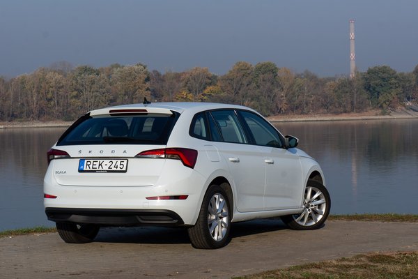 A Scala arányain látszik is, hogy milyen szereplőket kell pótolnia a márkán (és a konszernen) belül. Hiába hívják ötajtós kompaktnak, oldalról nagyon nyúlánknak tűnik, alig kellene alakítgatni rajta, hogy lelkiismeret-furdalás nélkül kombinak nevezzük. Három centivel hosszabb a tengelytávja és összesen több, mint tíz centivel hosszabb mint a kifutó Golf. A formával kapcsolatban elég vegyes érzéseim vannak: akadnak benne részletek, amik kifejezetten jól néznek ki (például a feláras, kristály hatású lámpabetétek), de szemből mindig volt egy olyan érzésem, mintha egy olyan kezdő bokszoló felé közelítenék, aki a számára még idegen pofonok nyomait alapozóval próbálná eltüntetni egy randi előtt.