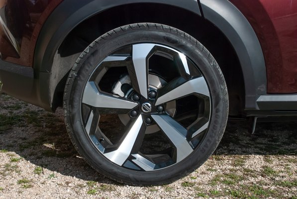 A karosszéria vonalvezetése az aktuális trend szerint modern, de nem gurult annyira messzire a gyógyszer, mint az első Juke-nál. Eltűntek a húsos kerékjárati ívek tetejére púpozott első lámpák, a hátsó világítótestek tánca is visszafogottabb lett, ami normalizálta a 422 literesre hízott csomagtér nyílásának formáját. A külső dizájn vesztett valamicskét a lendületéből, emiatt az „Aztakruva?!” vándorkupa a Toyota C-HR vitrinjébe kerül.