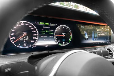 Az autó folyamatosan domborzati adatokat, sebességkorlátozásokat, közelgő lámpákat, kereszteződéseket figyel és jelzi, hogy mikor érdemes felengedni a pedált, hogy ideális legyen a kigurulás vagy visszatermelés, erre egy haptikus rezgéssel is rásegít. A dízelmotor ráindítása nem jár kellemetlen rántással, alig észrevehető, inkább csak a rezgések tónusa változik meg. Hogy a gyakori indítgatás és leállítgatás, meg a gyakori hideg üzem mennyire viseli meg a dízelt, az vélhetően a harmadik tulajdonos gondja lesz, bár az is igaz, hogy ha városban kizárólag árammal megyünk, pont megkíméljük a dízelt a rövid utas kínzástól. Érdekes, hogy mivel a villanymotor a kilencsebességes automata váltóharangjában van, elektromos hajtás közben is képes váltani, ezzel még jobb az elektromos rendszer hatékonysága, hiszen a villanymotornak is van hatékonyság szempontjából ideális fordulatszám-tartománya.
