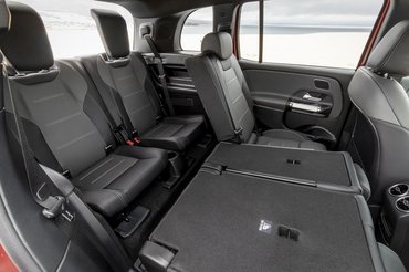 Ahogy azonban a szabadidőautókkal lenni szokott, a hatalmas hely nem jelenti, hogy valódi hétszemélyes lehetne a GLB; a feláras extraként kérhető plusz két ülésről a gyáriak azt mondják, 168 centi magasságig kényelmesek. 176 centimmel azért még be tudtam ülni, és a sínen előre tolható középső üléssornak köszönhetően magamra is tudtam csukni a támlát. A fejemnek-vállamnak jutott hely, de az apró ablakon a kilátás korlátozott, a magas padló miatt pedig azt a felhúzott térdes pózt kellett felvennem, amitől már negyedóra múlva kezdődik a vádlifájás. Ide tehát tényleg csak gyerekek ülhetnek, nekik azonban pohártartó, és ami még fontosabb, ülésenként egy-egy USB töltő jár.
