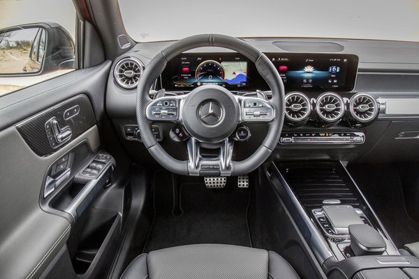 A kapcsolók és műszerek azonban megegyeznek a többi családtaggal, tehát a GLB is a még mindig ultramodern MBUX csomagot kapta. Ebben nemcsak tapipaddal, de képernyő-érintéssel, a kormányról, sőt hanggal is vezérelhetjük a központi kijelzőn megjelenő funkciókat (pl. navigáció, zene, autó beállításai), és az óracsoport sem csak azért LCD, mert úgy olcsóbb. Szokatlanul sokféle módon szabható személyre a műszerfal, a GLB off-road csomaggal rendelt változataiban még terepműszerek (oldaldőlés, lejtő, hajtásképlet) is megjeleníthetők.