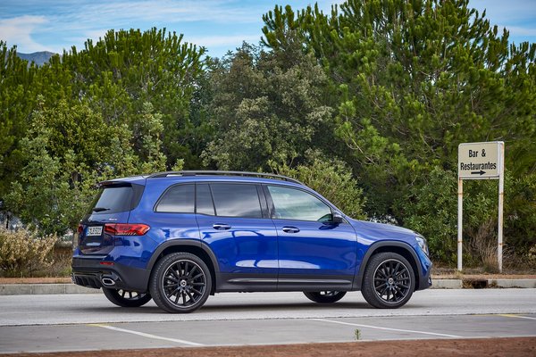 Légrugó nincs, tehát emelhető hasmagasság nem jár a GLB-hez, az a nagyobb Mercedes terepjárók ütőkártyája marad – már ha elhisszük, hogy ezekkel bárki is sarat dagasztani indulna. Utcán azonban ennek ellenére nagyon komfortos tud lenni, legalábbis a nem-AMG változat kifejezetten biztatóan tüntette el azt a kevés hepét és hupát, amit az általában tükörsima dél-spanyol országutakon találtunk. Ezt most a 220d-ben élhettük meg, és a jelenleg elérhető legerősebb dízel remekül boldogul a nagy testtel. A 8 fokozatú DCT finoman indul és gyorsan vált, nehéz zavarba hozni, a motorhang hallható, de nem kellemetlen, és ezen a próbán a szélzaj sem tűnt soknak, pedig szokatlanul meredek a szélvédő. Hiába nagy a test, igazából nem nehéz a GLB-t navigálni, parkolóházban is könnyen elfértünk, csak a legszűkebb hegyi szerpentineken éreztem úgy, hogy folyton átlóg valamink a másik sávba.