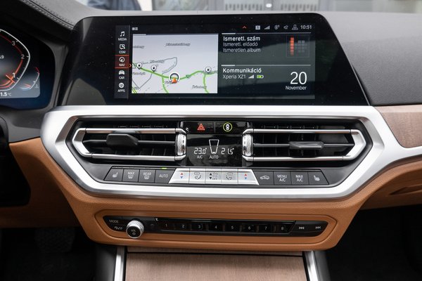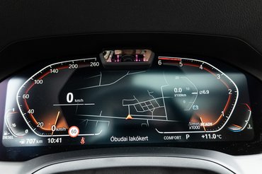 Az egyszerű és magától értetődő kezelhetőség jellemző a fedélzeti rendszerre is. Még a hangulatfények színének átállítása is megvolt pillanatok alatt, és közben nem érezni azt, hogy vakon vezetünk. Egyrészt a kijelző közel van az úthoz, másrészt a kézre álló iDrive tekerőgombja nem igényli, hogy rápillantsunk. Így aztán könnyen és gyorsan be lehet állítani bármit.