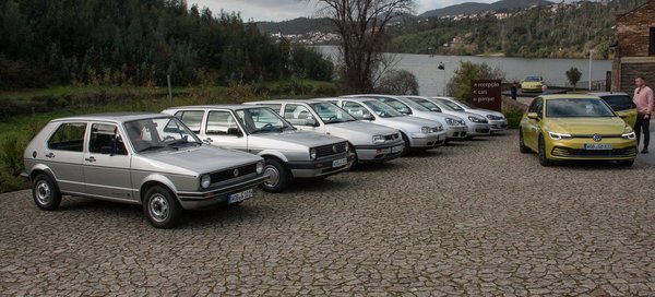 A gyár a nyolcas Golf bemutatóján kiállított az összes eddigi generációból egy-egy modellt ezüst színben, ki is próbálhattuk őket. A siker akkora volt, hogy már sötétedés után is egymás kezéből vettük ki a kulcsot, és könnyes szemmel emlékeztünk vissza az időkre, amikor például a hármast bemutatták, majd később légzsákot(!!!) kapott. Vagy amikor a kettes ABS-t. Ezek az autók a mai modellekhez képest érezhetően billegősebb, gyengébb, zajosabb modellek, de nosztalgia sok dolgot felülír. A sorozatban a négyes volt az, ami már zajkomfortban közelít, pláne a kiállított modell a VR6-os blokkal. Többen is ezt vittük volna haza, de azért sokatmondó a tény, hogy azonos úton haladva a VR6-os pontosan dupla annyi benzint kért, mint az eTSI, pedig a tempó alig volt több, a komfort viszont kevesebb.