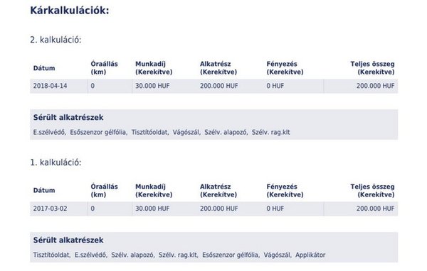 A mindössze hároméves Audi A7-et is ellenőriztük a Totálkár kártörténeti ellenőrzőrendszerével, amely az alvázszám megadásával keres az utóbbi 20 év magyarországi javítási kalkulációi közt, melyeket biztosítók, javítóműhelyek és kárszakértők készítettek. Az autó múltjában eddig két szélvédőcsere költségvetése szerepel, egyenként 200-200 ezer forintos összeggel. A lekérdezés ingyenes, ha a Totálkár nem talál gyanús nyomokat az autó múltjában, amúgy 3990 forintba kerül és erre a linkre kattintva azonnal elérhető.