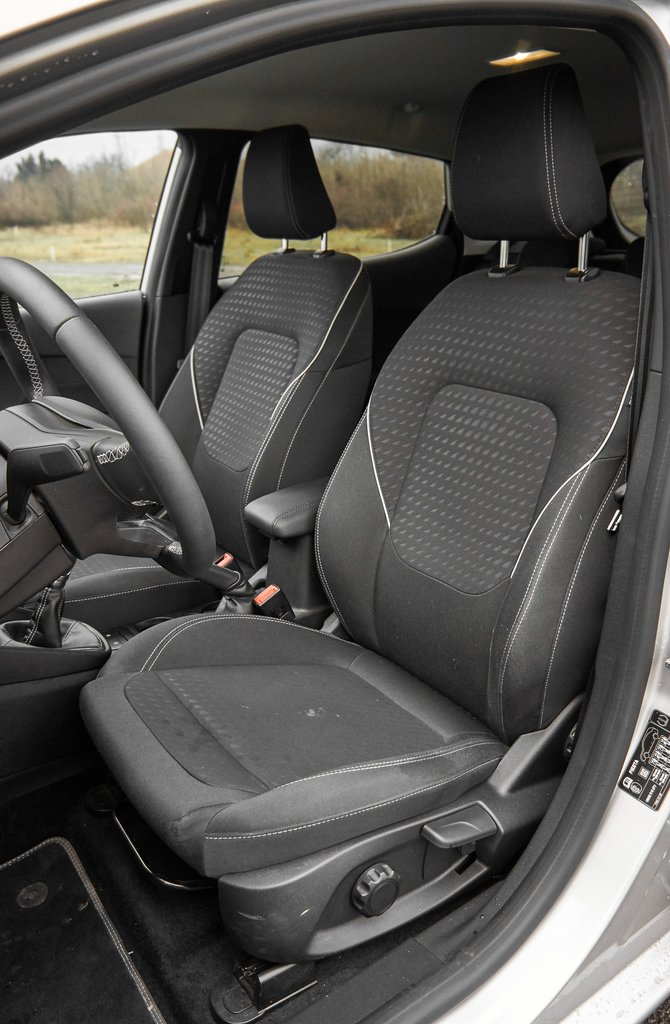 A hármasból a már két éve kapható Fiesta a legöregebb modell, és ez látszik rajta, a két franciához képest kívülről és a vezető ülésből nézve is teljesen oldschool. De nem a 2017-es bemutató volt régen, hanem tudatos döntésről van szó. A Fordnál úgy gondolják, akad még bőven konzervatív vásárló, aki örül a rendes körműszereknek és a gombbal vezérelhető klímapanelnek. Nem is lőttek mellé, a Fiesta-belső szinte már léleksimogatón hozza az otthonos jóságot. Bár, ha nálam lenne a ceruza, nem tolnám ennyire a sarokba a két főműszert a multifunkciós kijelző kedvéért, és a hátsó ablaktörlő aprócska billenőkapcsolóját sem sikerült megszeretnem az elmúlt két évben. De ezek megszokható apróságok.