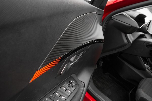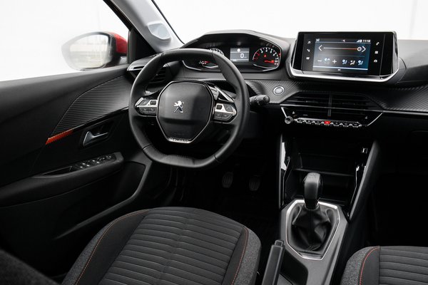 A Peugeot a legmodernebb, sőt, szinte már avantgárd a belseje, már ami a műszerfalat illeti. Bár ebben nincs benne a 3D-hatású, vetített csoda-LCD, csak két körműszer, klasszikus mutatókkal, amiket a a Peugeot-nál megszokott módon a kormány karimája fölött kell nézegetni, bár a 208-asban páran majd nem látják a műszerek alját tőle. Fura a fordítva mutató fordulatszámmérő, bár a célcsoport számára az amúgy is inkább tölteléknek van ott. A műszerfalat ezen a felszereltségi szinten puha(!) karbonutánzat borítja, viszont nincs meg benne a hangulatfényes csoda, hanem simán színes betét van helyettük az ajtókon.