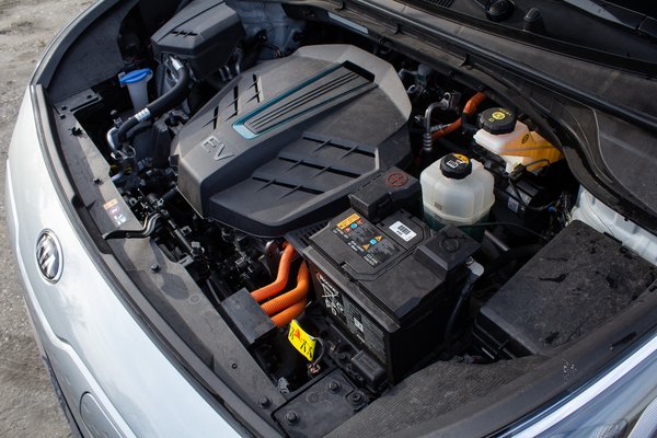 A villanyos Kona után a motorjánál sincs nagy újdonság, ugyanaz az állandó mágneses szinkron villanymotor van mindegyik típusban és változatban. A kisebb akkus változatoknál annyi különbséggel, hogy ott 136 lóerőt tud leadni az akksi korlátai miatt, míg itt (és az erősebbik Konánál) 204 jön ki belőle. A nagyobb méret és tömeg miatt kicsit lomhább a Hyundainál a Kia, de ha valakinek ez fájna, gondoljon arra, hogy a Kona után bő egy évvel érkezve a Niro valószínű már kiforrottabban kapta meg ugyanazt a hajtást, szóval kisebb a para az elsőéves modelleknél. Amúgy 7,6 másodperc alatt van meg neki nulláról a száz, a crossover mezőnynek még a sportosabbik felét is megenné lámpától lámpáig. Az azonnali nyomaték (395 Nm van belőle) még mindig az egyik legjobb dolog, ami a villanyhajtáshoz jár, és az sem feltétlen baj, hogy itt nem vág hátba a padlógáz, csak szimplán jólesik.