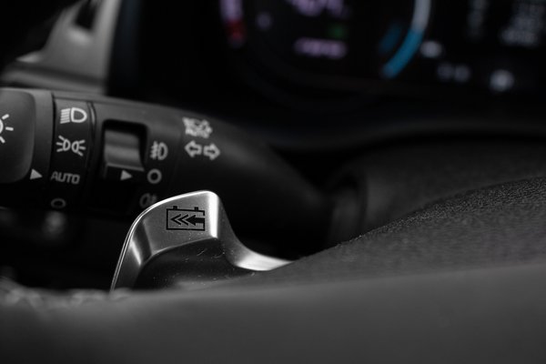 Az Ioniqban már láttunk ilyet: a kormány mögötti fülek lényegében pont olyanok, mint amikkel a sportosabb automataváltós autóknál fokozatkapcsolni lehet, ha arra van kedved. Szóval mint a kormányváltók, de itt a motorfék mértékét szabályozzák ezek a fémes érzetű flepnik. A balt húzogatva egyre erősebb lesz a motorfék, és vele a visszatáplálás mértéke, a jobbal pedig ugyanaz visszacsinálható. 65 km/h-ig lehet vele egypedálos módot is játszani. Ez a Nissan Leafben sokkal jobban ki van találva, ott tényleg elég a gázpedált nyomni/felengedni minden élethelyzetben, itt viszont folyamatosan húzni kell a bal kart, ha azt akarjuk, hogy a mechanikus fékek használata nélkül állóra fékezze magát. Az első fokozat a legésszerűbb, kábé mindenhova elég szinten fogja meg az autót, de azután kényelmetlenül erősen fog. Nem hiszem, hogy egy többéves együttélés alatt sűrűn kapcsolgatnám ezeket, de azt megadom, hogy egy nagyobb lejtmenet előtt tuti mindig feltolnám maxra, hogy gyűljön a kilométer, és véletlenül se a fékek kopjanak. Bár ezt nem túl éleseket fékezve alighanem levezérelné a Niro is magától, csak talán nem ennyire dogmatikusan.
