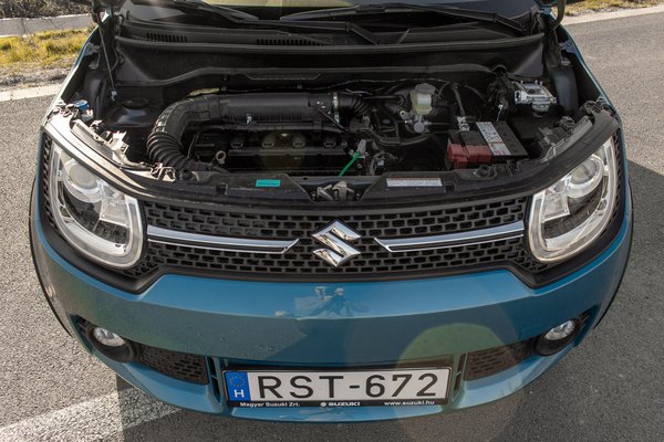 Motorból csak egyféle van most az Ignishez, és amióta csak ezzel a lágyhibriddel lehet kapni, az automata váltót felejtsd el, az 1,2-es hibridhez az ötös kézi jár minden felszereltségben. Referenciának azért nem árt, ha mellétesszük, mit tud(ott) ugyanez a kis szívó benzines villanyos besegítés nélkül. Annak 12,2 másodperc nulláról a száz, ennek meg 11,8. Na, vezetési élményben is kábé ekkora az előny, merthogy érezni nem nagyon lehet belőle a hibridséget. Legfeljebb a tényleg csendes indításoknál, de azzal csak a füled van beljebb.