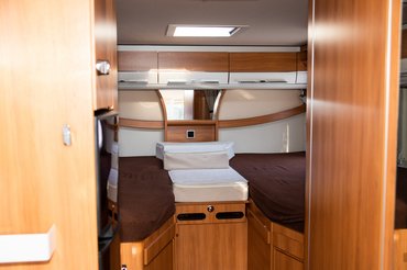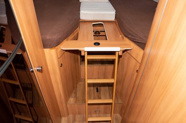 Belsőleg nem néz ki rosszul, de ha az ember már kipróbálhatta a kvázi utódmodellnek számító BMCI-t, látszanak a változások. Hogy mást ne mondjak, a hátsó ágy fellépője, ami az újabb verzióban egy, a lépcsőből kiemelhető kis alu fellépő, itt egy ágyból kihúzható fa létra. A fa verzió hajlamos elmászni, ami kis figyelmet igényel fel-lemászáskor. A típus újabb változatánál a két ágy közösítő elem nem kihúzható, így azt nem használva valahova tenni kell, míg a régiben meg csak betoljuk az ágyban lévő fiókjába. Cserébe az új stabilabb.