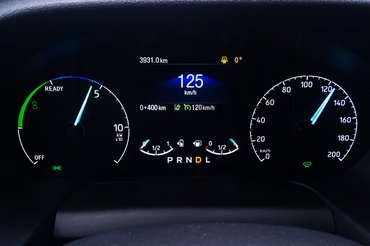 Amíg van az aksiban áram, a villanyautók lendületességével mozoghatunk (126 lóerő és 355 Nm áll ekkor rendelkezésünkre), ami ekkora bódétól nem rossz trükk. Sajnos ahogy elfogy, onnantól kezdve a nemrég tesztelt lakóautóhoz hasonlóan lendületes. Ha autópályáznánk, igen gyorsan kiautózzuk a villanyt, ráadásul a tempót 120-ban maximálták, és ezt még lejtőn se tudjuk túllépni. Feltehetőleg a villanyhajtás valamilyen védelme miatt lehet ez. A tempomatot is 120-ra tudjuk maximum beállítani, viszont, ha odalépünk neki, az óra 125-ig kúszik fel, feltehetőleg ez a valódi 120, csak ennyit csal a rendszer.