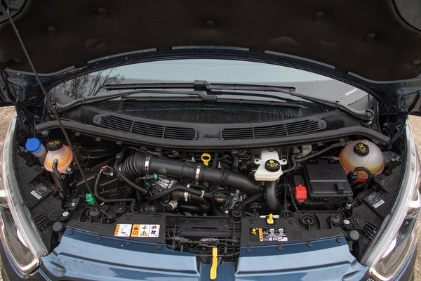 Nálam előny, hogy a fenekén lévő apró feliraton kívül gyakorlatilag semmi nem látszik abból, hogy hibrid. Még nagyobb előny, hogy a jó akkuelhelyezésnek köszönhetően belül se változott semmi, pont ugyanúgy néz ki, mint bármelyik Ford kisbusz. Ez a teherszállító változatnál igazán nagy előny, hiszen így a raktér méretei se változtak.