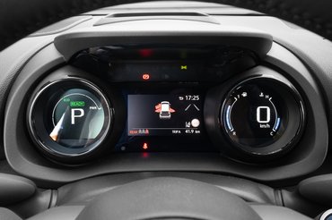 Ki a városból, országút, majd autópálya következik, kinyújtóztatom a Yaris lábát. Itt már nem olyan fickós a villanyrendszer, ezért a benzinmotor bedörren és segítségre siet, ami ennél a tempónál már csak kis mértékben csökkenti a kellemszintet a kabinban. Felveszem a ritmust, 120, elveszem a gázt, a benzinmotor is leáll, tényleg villannyal száguldunk. Mire itt tartunk, addigra a benzinmotor voltaképpen olyan fordulaton működik, hogy eleve alig hallom, mert azért van az az rpm, ahol a háromhengeres is elkezd simán járni. 120-130-115-135 km/h, hoppá túlléptem a korlátozást, vissza – így megy ez öt kilométeren át.
