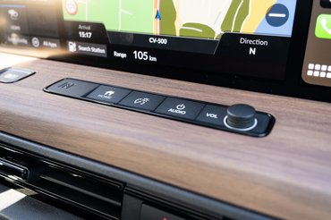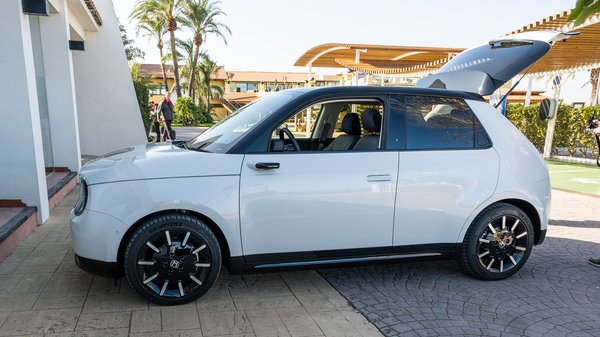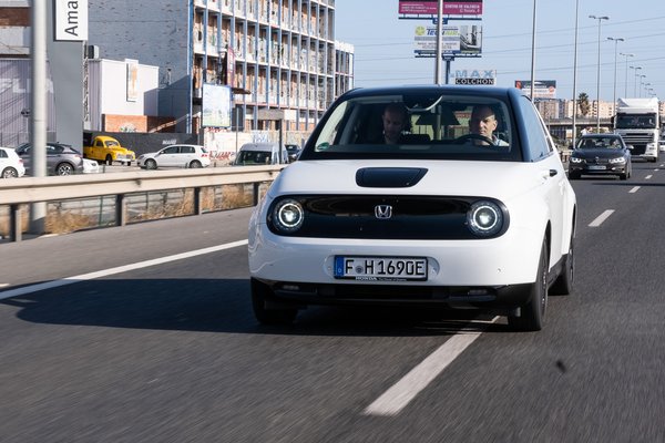 Egyértelmű, hogy kizárólag városra csinálták az E-t. Az akksija 35,5 kWh kapacitású (állítólag ez a városi használatra optimális méret), ami idei autótól nagyon kevés. A 210-222 km-es WLTP hatótáv a Honda szerint bőven elég, mert az európai városi autós nem ingázik 40 km-nél többet, de hála istennek a Hondán és a Mazdán kívül már szinte senki sem a minimumra igyekszik lőni. Nagyon meglepne, ha két év múlva nem jönne ki egy 45-50 kWh-s, 300 km-es változat ezen az áron, amire egyelőre senki se utalt, de nehéz lesz elkerülni. A mi nem reprezentatív tesztutunk alatt egyébként 150 kilométer se jött volna össze az E-nek, de az is igaz, hogy nagyrészt városon kívül mentünk, ami mindig a nehezebbik fajta terep a villanyosoknak, mert kevés a lehetőség visszatölteni, és többet eszik a légellenállás.