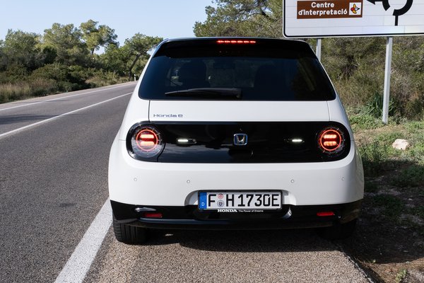 Az E az évezred legjobb autószemeit viseli. Ledkörökből kidolgozott íriszt, elöl fényszóró-, hátul féklámpa-pupillát. A szemei fölött direkt egy kontrasztos színű púp alá tették a CCS töltőcsatiját, hogy orra is legyen. Olyan felismerhető és egyedi jelenség a mostani kisautók között, és olyan lenyűgöző keveréke a steril hightechnek és a gátlástalan, hatásvadász cukiságnak, amihez a japánok értenek a legjobban, amióta a világ a világ.