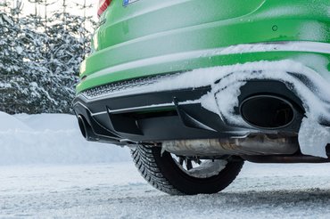 Ellenben olyan természetességgel utazik 100-zal a végtelen fehérben, mintha a világ legegyszerűbb dolga lenne. Ez még csak a kis Quattro, nem a torsenes okosság, hanem a keresztmotoros autókhoz reszelt Haldex-kuplungos megoldás, de annyira hatékonyan dolgozik, hogy aki ennél többet akar, az festi magát. Kanyarban gázra érezni, hogy az autó a hátuljával rásegít az ívre, itt már orrtolás csak akkor merül fel, ha az ember nagyon béna. Jó a beltér, tetszik, hogy az érintő alatt maradtak az analóg szabályzók, meg az is menő, hogy a sportülésekben az autó külső színére rímelő betétek vannak, de a lényeg úgyis az RS gomb a kormányon. Ezen előre felprogramozott menetmódok vannak, kicsit kemény futómű, közepesen harcias motor, mérsékelten szadista váltó – ez az RS1. Aztán ott a teljes tűzerő, az RS2, de persze magunknak is hangolhatunk megőrülős beállítást.