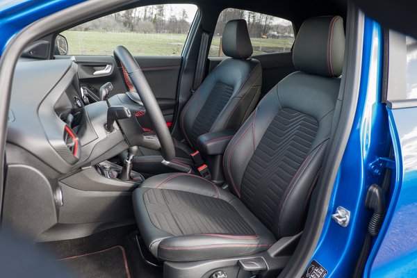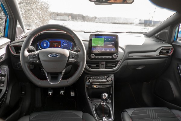 Nem sima Fiesta ez, mert az egész futóművét átdolgozták, szélesebben taposnak a kerekei, ezért hiába magas, vezetni rendes, fordos élmény, amiről mindannyian tudjuk, hogy jó. A 155 lóerős motor háromhengeresen brümmög ugyan, de szinte már jó a hangja így is, ereje pedig bőven, bőven van, amit az is mutat, hogy még a Tesla Model 3 Performance vezetése után is egészen vidámnak éreztem, pedig az után tényleg minden kispolszki. Vagy gördeszka. Emelkedőn rugdalva.