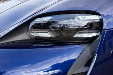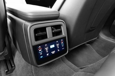 Ehhez képest az első üléseken nem tágasabb a kocsi, mint egy 911-es (nagyon hasonló a hangulat egyébként, csak mindenfelé burjánzó LCD-felületek jelzik, hogy valami nincs rendjén), hátul pedig olyan éppen passzentos. Az én 187 centi magasan véget érő fejem például nekiütközik az üvegtető mellett körbefutó karosszériamerevítésnek, a térdem meg épp elfér. Ráadásul a hátsó ülések környékén már nem annyira eget verő a minőség: az első ülések háta óriási kongadobként döng, az ajtókárpitok nem különben. Csak a gyerekek észre ne vegyék ezt, mert apuka onnantól megőrül majd az első ülésen.