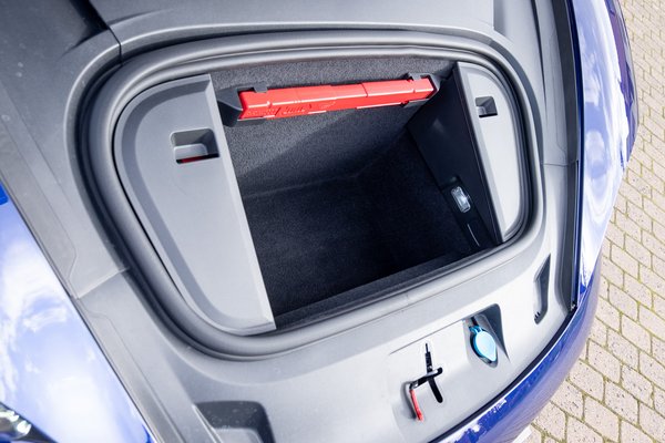 Oké, csomagtartó nem sok van, nem tudom, hová tették a helyet ebből a nagy dobozból, talán eladták Hong Kongnak jó pénzért, mint a CO2-kvótát, mert az orrában csak egy nagyobbacska lavórnyi rekesz van, a farában pedig iszonyú lapos a csomagtér, s abból is egy rakás litert felemészt a töltőkábel. Egy Teslában vagy háromszor ennyi a raktér. Nem a nagy S-ben, hanem a kicsi Model 3-ban.