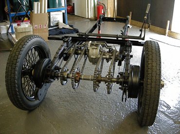 Egy-, maximum kéthengeres motorjuk tipikusan valamilyen motorkerékpárból származott, hajtásukat nem kardántengellyel, kúpkerekes differenciálművel és féltengelyekkel oldották meg, hanem differenciálművet nem tartalmazó, egyszerű szíj- vagy lánchajtással és egy darabból készült hátsó tengellyel. Differenciálműre már csak azért sem igen volt bennük szükség, mert a karosszériájuk rendkívül keskeny volt, bennük a két személy sokszor egymás mögött foglalt helyet, néha pedig hátul csak egy kerék hajtotta őket.