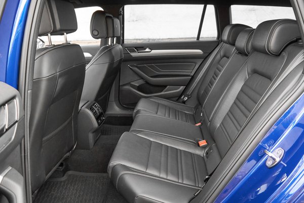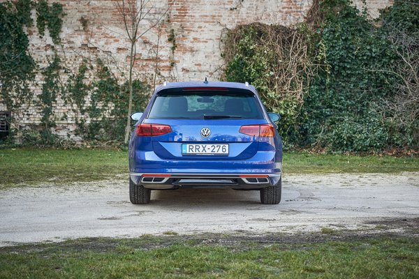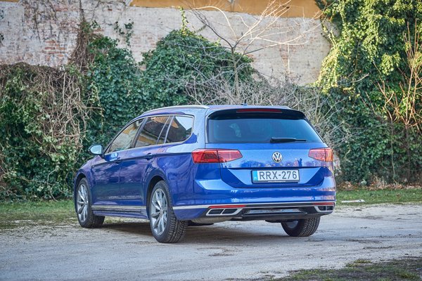 A frissítéssel bevezetett Lapiz-kék metálfény pont nagyon menő lett. Jól néz ki a Passat Variant, ráadásul úgy szép, hogy nem spórol a helykínálattal: 650 literes csomagtartója vitán felül elég, a hátsó sorban is döbbenetes a tér. Még középen ülni is elviselhető, elmentünk vele ötösben kirándulni, és senki sem panaszkodott. Tökéletesen vállalható családi kocsi, inkább azért nem keresik már erre a célra, mert jelentős a kínálat olyan autókból, amiben három egyforma ülés van hátul. Érdekes módon elöl passzentosabb, de erről az R-Line csomag sportülése tehet.