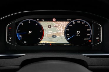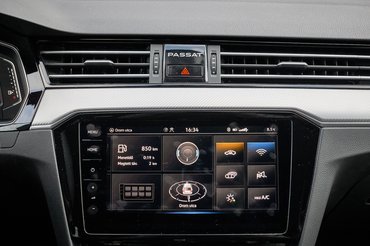 Megújult az LCD óracsoport is, ez speciel remek lett. Három valóban különböző összeállításból választhat a sofőr, ráadásul a kormányon saját gombbal lapozhat közöttük. Egy csomó gyártó nem tud mit kezdeni a digitális kijelző adta végtelen szabadsággal, szóval ez nagy győzelem a VW-től. Igen ám, csakhogy ezért a gombért beáldozták a telefon billentyűt, tehát hívást csak menüből lehet felvenni, és lerakni. Ami annyira szembe megy a megszokásaimmal, hogy az őrületbe kergetett, egy hét után sem tudtam elfogadni. Bár egy tulajdonos idővel bizonyára köré igazítja majd a szokásait, de aki bérautóként ül Passatba, biztosan értetlenkedve keresi majd a minden más kocsiban megtalálható telefongombot.