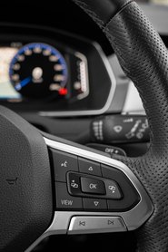 A Lapiz-két dukkó amúgy R-Line csomaghoz jár, melyből háromféle van. Az alap, amit a tesztautó kapott, sportüléseket, fémpedálokat, bőrkárpitot és más utastéri elemeket tartalmaz, de futóműültetést, sportkormányt és elektronikus önzáró differenciálművet csak a sportcsomag tud, további felárért. Aki ezekből semmit sem kér, csak élvezné a kék színt, létezik egy R-Line design csomag is, mely csak a logókat és a tetőspoilert tartalmazza. Hogy ez így egy kicsit álságos, azt most hagyjuk, hiszen igazából a sportülések is feleslegesek, a kocsi egyáltalán nem kívánja.