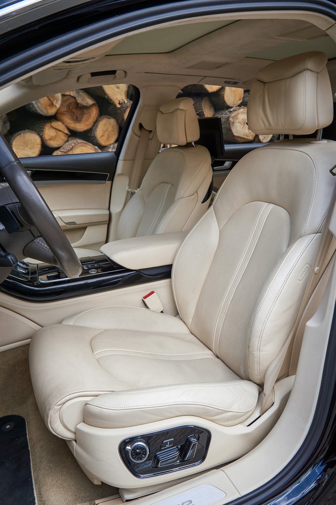 Az ülés kényelmes, ami nem hangzik komoly kijelentésnek egy sok tízmilliós luxusautóról, csakhogy vénségemre háklis lettem erre, és itt tényleg jó a vezető trónja. Minden irányban állítható, emiatt persze hetekig eltart, mire egy tulajdonos megtalálja a tökéletes helyzetet, de ez nem baj, mert akkor is kényelmes, amikor még nem perfekt. Az alacsonyabb rangú német szedánok ülései csak akkor jók, ha már tökéletesre állítottam őket, úgyhogy a klubfotel méret lesz a megoldás. A könyöklő vezetőnek és utasnak külön személyre szabható, a váltókar pedig vízszintes és bőrözött, hogy pihentethessük rajta a kezünk, amíg a mai szemmel elavultnak tűnő, de gond nélkül használható MMI fedélzeti rendszer tekerőjével és gombjaival babrálunk. Apropó bőr: feltűnően jó minőségű a kárpit mindenhol. Hiába világos az utastér, teljesen újszerű száznyolcvanezer kilométer után is.
