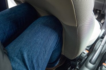 A vidámság és az ötlet azonban csak egy dolog. Három és félszer másfél méteren nem lehet megváltani a világot, ezt érezni fogjuk, ha 180 centi körüli magassággal próbálunk szerencsét. Ebben a kivitelben az ülésmagasság nem állítható, csak az ülőlap dőlésszöge, így ezzel próbálhatunk eltávolodni a plafontól. Helyes kormányfogással a bal vállunk és könyökünk az ajtóborításnak támaszkodik, tízből nyolcszor pedig a kézifék helyett az ülés állítókarját akartam kiengedni. Kicsit mintha a cipőm lenne egy számmal kisebb.