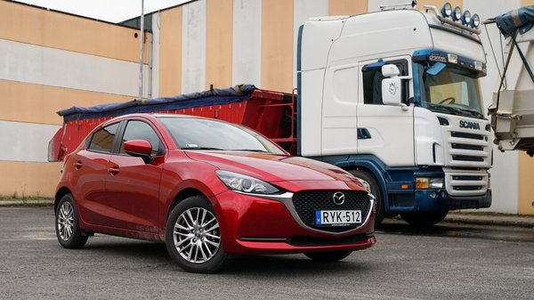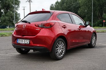 A hibrid rendszer az 1,5 literes, 90 lóerős, négyhengeres Skyactive G szívó benzinmotort egészíti ki, és egész szép munkát végeznek együtt, fogyasztásban biztosan. Átlagban 5,9 litert evett az autó, ami nem is jár olyan messze az 5,3-as WLTP-értéktől. Autópályán, még nagy forgalomban sem fogyasztott többet mint 4,8 liter, városban araszolva már 6,7-6,9 volt ez az érték, de nem ment hét fölé. Valószínűleg itt mutatkozik a lágy hibridhajtás előnye, a folyamatos motorleállítás és -beindítás spórol egy kis üzemanyagot. A facelift előtti modell is volt nálunk teszten, azt Anti próbált, ő 6,4 literes átlagra jött ki, nagyon dinamikus közlekedéssel. Hülyeség lenne ebből következtetéseket levonni, de az biztos, hogy városban induláskor, vagy hirtelen gyorsításkor nem jön rosszul a lágy hibrid rendszer.