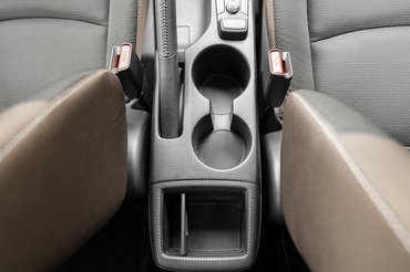 Az utastér letisztult, egyszerű. A barna és fekete színű szövetkárpit szerintem annyira nem passzol egymáshoz, sem a piros külsőhöz, ha csak egyszínű fekete lenne, akkor legalább a műanyag burkolattal és műszerfallal összhangban lenne. A műszerfal egyébként nem bonyolult, jópofa kör alakú légbeömlői vannak - illetve egy kevésbé jópofa a vészvillogótól jobbra - közepén keresztülhúzódik egy fényes műanyagpanel, ami alatt a nagy, könnyen kezelhető gombok is megtalálhatók, amikkel hűtést/fűtést lehet állítani. A gombok alatt egész tágas tárolórekesz helyezkedik el, ahol simán elfér egy pénztárca és egy telefon is. Utóbbinak különösen fontos, hogy legyen helye, mivel a portok is a tárolóban találhatók, ott tudjuk csatlakoztatni telefonunkat vezetékkel.