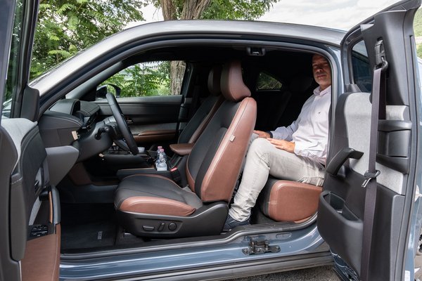 Ugyanakkor az ára jó: az MX-30 is bekerült a tizenegymilliósított villanyautók körébe, vagyis legalább hatféle verziója esik listaáron a támogatási álomhatár alá. Mondjuk én az összeset behoznám, de mondjuk a napfénytetős Luxury Vintage-Premium verzóknál kéne venni még egy hatszázezres gumiszőnyeg-garnitúrát, amit külön kiszámláznak...mindegy, az a lényeg, hogy a Mazda iránt nagy az érdeklődés, és a Mazda-importőr ügyvezetője, Együd Tibor szerint nincsenek mennyiségbeli limitek, vagyis tudnak hozni Magyarországra annyi MX-30-ast, amennyit a piac felvesz. Soha jobb pillanatban nem érkezhetett volna, mint amikor a népek beválhatják a 2,5 milliós ingyenpénz-utalványaikat elektromos autókra. De taxi nem az MX-30-ból lesz, az is biztos.