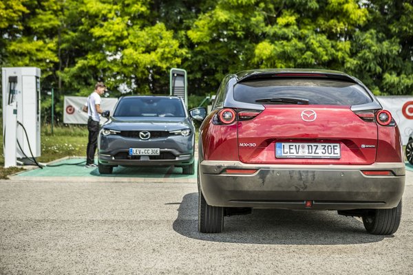 A Peugeot akár 11 kW-tal tölthető háromfázisú váltóáramról, ami a Mazda-féle 6,6-nak majdnem a duplája. Egyenáramú gyorstöltésre pedig 100 kW-tal képes az e-2008, szemben a Mazda 50 kW-jával. Nincs mese.