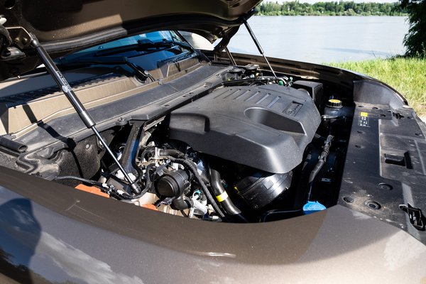 A csoda – az alukasznin kívül a másik – a kocsi orrában lakik. A Jaguar Land Rover, azaz a JLR kifejlesztett egy új motort, amibe mindent beletettek, amit 2020 adhat a belső égésnek. Sorhatos, háromliteres blokk ez, amelyet kettős megfúvású turbó tölt fel 2000-es fordulat fölött. Kis fordulaton, hogy elmaradjon a turbólyuk és jól reagáljon a gázra, egy villanymotorral hajtott kompresszor tölti fel, s hogy semmit ne bízzanak a véletlenre, még egy 48 voltos, széles szíjjal a főtengelyhez kapcsolódó generátor-hajtómotor-indítómotor kombót is bevetnek. Igen, jól érzitek, ez egy kompresszoros-turbós nagy sorhat, amely egyben mild hibrid is. Hogy mi jön ki belőle? 400 lóerő és 550 Nm, még hozzá a láb legyintésére. Vele a 0-100? 6,1 másodperc, szédületes.