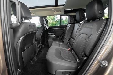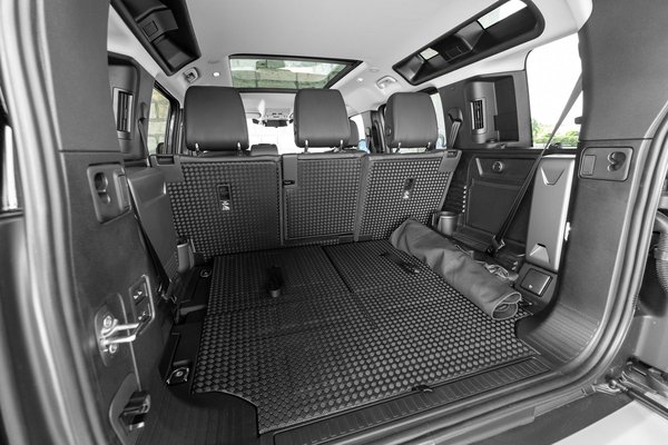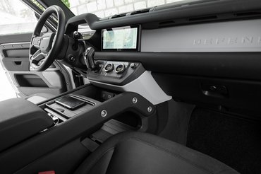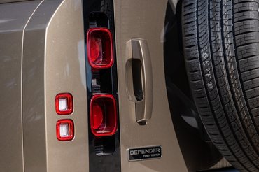 Eleve a forma is óriásit dob az élményen, ugyanis nagyon mást látunk, mint egy normál off-roaderből. A Land Rover megtartotta a régi Defender fontos formai jegyeit: sima oldalfalak, szinte derékszögben áll egymáshoz képest minden újabb sík, csak a sárvédők szélesebbre peremezett széle töri meg a kazánház-stílust, illetve a tradicionális Defender-váll végigfut az alacsonyan húzódó, vízszintes derékvonalú ablakok alatt. Meredek a szélvédő, oldalra nyílik a csomagtérajtó, a géptető két oldalán taposólemezek, a tetőben pedig a régi Szahara-tető korából itt maradt csillagjegy-kémlelő ablakok – aki ebbe az autóba nem látja bele az ősét, az vak.