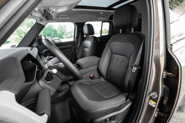 Terepen verhetetlenek vagyunk, ahogy a Defender és elődeinek (nagyjából) összes generációjában azok voltunk. Méretünkkel hibátlan a street cred-ünk, mégse romboljuk le az összes utunkba kerülő tereptárgyat, mert a meredek szélvédő oszlopai alig takarnak ki valamit a hasznos látótérből, a kocsi sima oldalai miatt pedig sokkal jobban érezzük a határokat, mint a G osztályon innen szinte bármi másban.