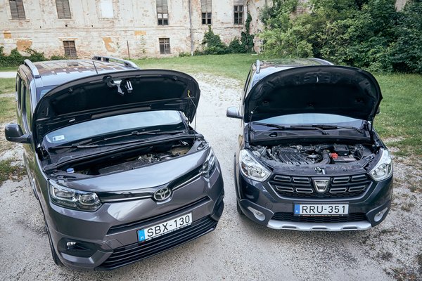 A Toyota hatfokozatú, sokkal hosszabb áttételezésű váltót kapott, ezért nem érezzük az extra nyomatékot (156 vs. 205 Nm), viszont nagyon nyugodt utazóbatár. Igazából egyik autó sem tűnik izmosnak, kevés jóval kecsegtet, hogy hegynek fel mindkét kocsi kéri a visszaváltogatást még üresen is. Az aktuális árlistán egyébként a 130 lóerős 1,33 literes turbó az egyetlen benzinmotor a Daciához, márpedig a Proace csak a tízmillió forintos csúcsmodelben ad ennyi pacit. Szóval aki úgy érzi, nem bírja ki előzés nélkül, annak a kisebb, könnyebb és erősebb Lodgy a nyerő.