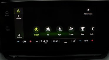A középső befúvók teljesen logikus módon helyet cseréltek a 10,25 colos képernyővel, a műszerfal virtuális lett, és a szélvédő alatti napcsapdát ügyesen kétszintesítették, igaz, ha rásüt a nap, ez így is brutálisan tud fűteni. Plusz a befúvókról eltűnt a tekerő - most úgy zárjuk el, hogy kicsapjuk oldalra, és kész. Ami sajnos maradt, hogy a középkonzol pont olyan, hogy nyomja azok térdét, akik a Superbben pont kényelmesen elférnek, pedig a Superb beltere nem igazán nagyobb. De nem árt hangsúlyozni az ilyesmit. Ez a térdnyomás úgy 1,85-ös magasságú vezetőknél kezd előjönni, nekem még pont kényelmes. Ja, és lett beépített HUD, meg változtatható színű led-csíkok a kárpitba.