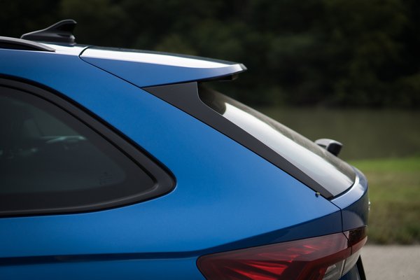 A hátulja majdnem akkora megváltás, mint az eleje. Már az oldalnézetben is sokkal dögösebb a vasalódeszkányi felső szpojler, ami gondolom elsősorban áramlást választ le, és csak másodsorban néz ki iszonyú jól. Nem beszélve arról, hogy a szoptatós tengerimalac-mellbimbóra emlékeztető GPS-antenna helyett kapott végre rendes cápauszony-antennát az Octavia, de olyat, amit nagy lelkesedéssel terveztek. Tudom, nem mindenkit érdekel, mi a francot lehet egy ilyenen tervezni, de lehet.