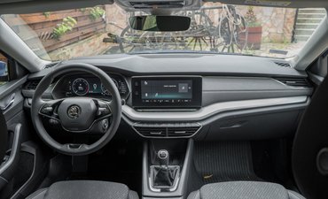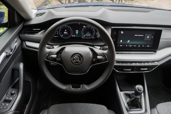 Belül nem mondom, hogy jobb lett, mert belül szerintem a kifutó Octavia is nagyon jó, egyszerűen csak régi már az a formavilág. Dolgozni legtöbbet az új kormányon dolgoztak. A világszenzáció nyilván a két küllő, ami az alsó madárfogással vezetni szerető tulajdonosokat repíti az ígéret földjére - optikailag nem mutat sokat, hiszen ha oda nézünk, ott úgyis a nagy sötétség van. A kormányközép köré csináltak egy nagy mélyedést, mint amikor a rendőr megbüntet még valakit késő délután, csak hogy lássák, dolgozott. Meg hogy elférjen az a zongoralakk, amit dicséretes módon száműztek a beltér egyéb pontjairól.