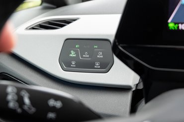 Egyébként fent szépen fogy el az erő, ahogy az elektronika leszabályoz, de addig egész ütőképesen megy autópályán is, és a környékbeli Teslákat leszámítva nincs sok ellenfele. Viszont a fék, pontosabban a pedálérzet az ID.3 leggyengébb pontja, vezettem már rosszabbat, de nem sokat. Mint minden visszatermelő autónál, legyen akár hibrid, akár tisztán elektromos, a fékpedál útjának az elején generátorosan, azaz visszatermelve fékez és a rendes fékek csak később lépnek be. Az ID.3-nál nagyon függ a fékhatás attól, hogyan kezdted a fékezést: ha finoman, mert először csak lelassult a faluban a sor, utána meg megtorpan, mert valaki balra akar fordulni, akkor szinte a padlóig tiporva is alig bírsz megállni egy ilyen banális szituban. Pedig a fékhatás kiváló, vészfékezéskor már az elején akkorát lassul, hogy a szemgolyóimat csak a szemidegek tartották a helyükön, igaz, a fékről lelépve még érezhető késedelemmel hagyta abba a fékezést, egyszerűen a fék nagyon indirekt és állandóan vándorol a nyomáspontja. Meg lehet szokni, de ettől még nem jó. A normál villanyautózásban viszont pont elég a B mód megnövelt visszatermeléssel: ilyenkor 0,3 g a lassulás, ha lelép az ember a gázpedálról, az X alakban világító féklámpák is felgyulladnak. De a kritikus szituációkban csak ott van a valódi fék, ezen biztos lehetne még javítani.