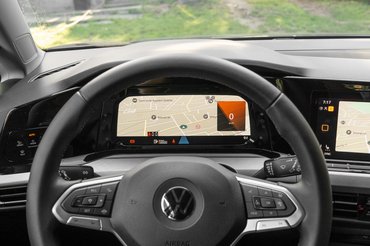 Korábbi Golfból átülve azonban komoly megrázkódtatás lehet a VW digitális műszerfala. A kormányon megmaradtak az ismert billentyűk, a bajuszkapcsolók is a szokásosak, ezen túlmenően azonban burjánzanak az érintőgombok és -képernyők. Még a hangerő is érintésvezérelt, eltűnt az önálló klímapanel, mert a bonyolult menürendszer részévé vált. Ez nagyjából olyan, mint a Peugeot iCockpit a 308-ban, amiért akkora szarcunamit kaptak a nyakukba a franciák, hogy azóta visszahoztak egy csomó kapcsolót az újabb változatokban.