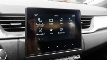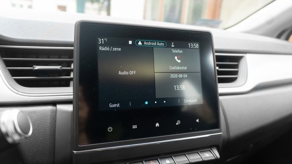 Fapados modellről lévén szó, az infotainment nem traktál túl sok menüponttal, de kit izgat, ha már ebbe is benne van az Android Auto / Apple Carplay? A tükrözés pillanatok alatt megy és általában jól is működik, egyedül a Spotify / Google térkép közti váltáskor fordult elő, hogy hosszú másodpercekre befagyott a rendszer. Plusz marhaság, hogy a Hondához hasonlóan a Renault is rejtegeti az Android Auto menüpontot, így ha a telefon csatlakoztatása után valamiért nem ugrana automatikusan a térképre a rendszer, a főképernyő felső keskeny sávjában kell keresni a menüpontot. Egyébként három különböző főképernyőt állíthatunk be, a csempékre pedig olyan elemet húzunk, amit csak szeretnénk (telefonálás, rádió, egyéb média, sokféle óra van a repertoárban).